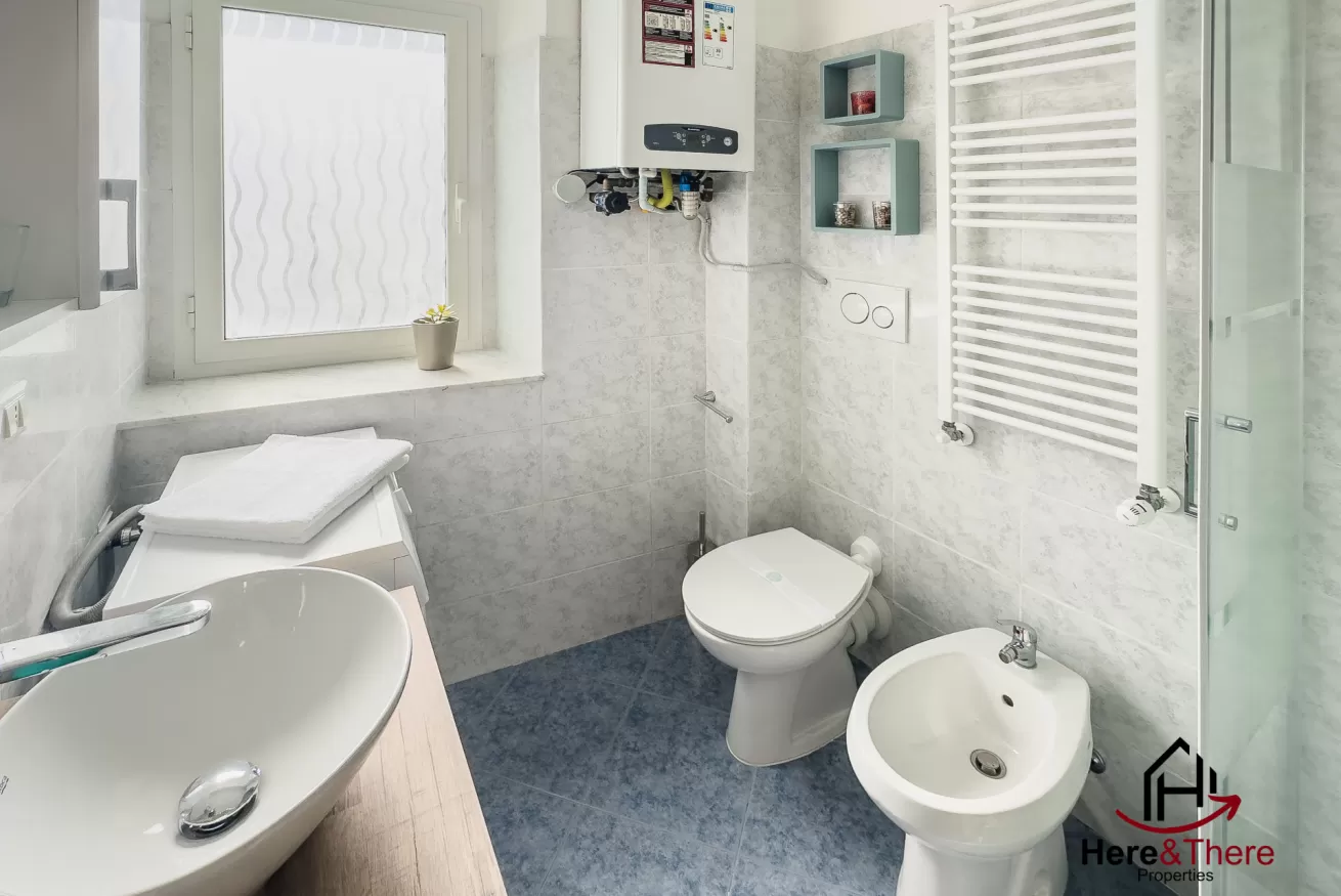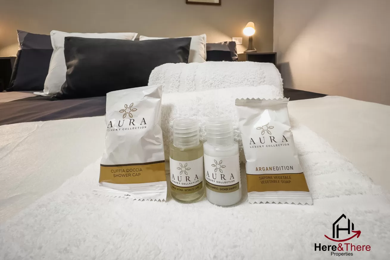 L'ingresso è accessibile in autonomia grazie a una cassetta di sicurezza per ritirare le chiavi, permettendo di entrare a qualsiasi ora. All'interno, troverete una zona giorno ampia con aria condizionata, divano letto, Smart TV con Disney+ per i bambini, e Wi-Fi ultraveloce gratuito, perfetto per chi lavora da remoto. La zona pranzo è adiacente e la cucina è moderna, con tutti gli elettrodomestici necessari, inclusi microonde, frigorifero, e una macchina Nespresso con cialde e infusi offerti dalla casa.